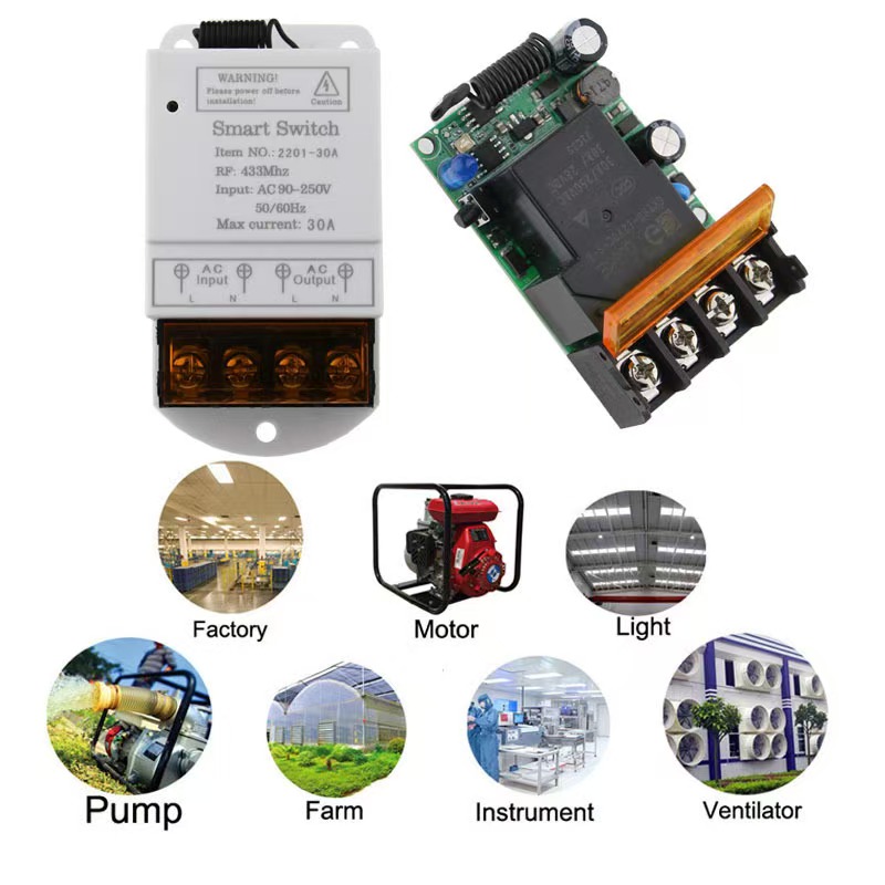 30A High-power Water Pump Controller – Wireless Remote Control Switch – Wide Voltage 110V – 220V Receiver