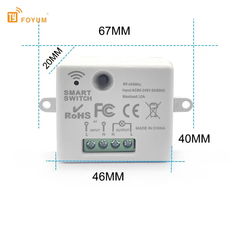 AC220V wireless remote control switch, no wiring required, can be freely pasted on smart furniture for controlling lighting and electrical appliances in the home