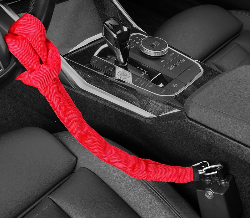 Anti-Theft Universal Steering Wheel Lock Chain with Ball Bearing Locking ABS Material Compatible Car’s Steering Wheel Seat Belt