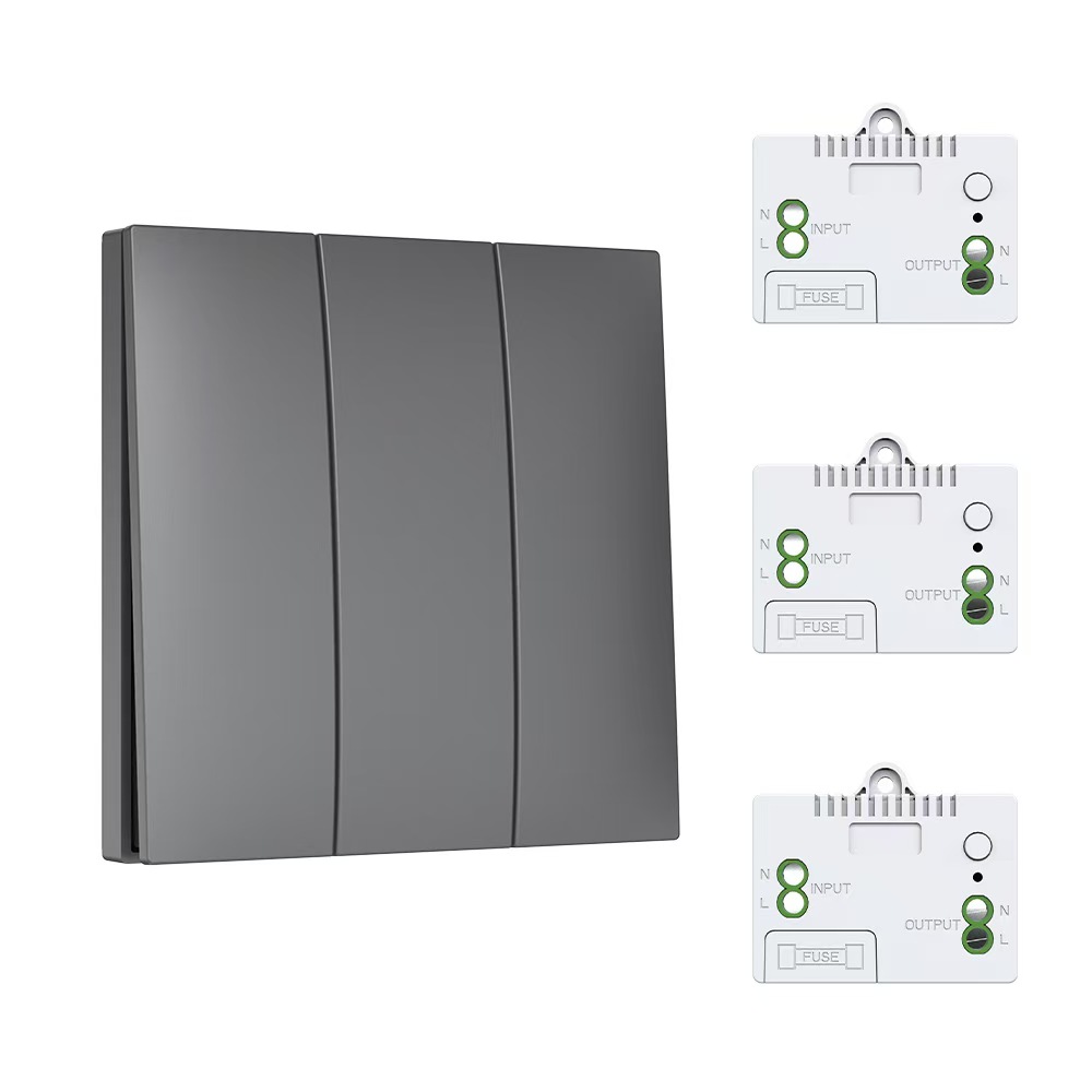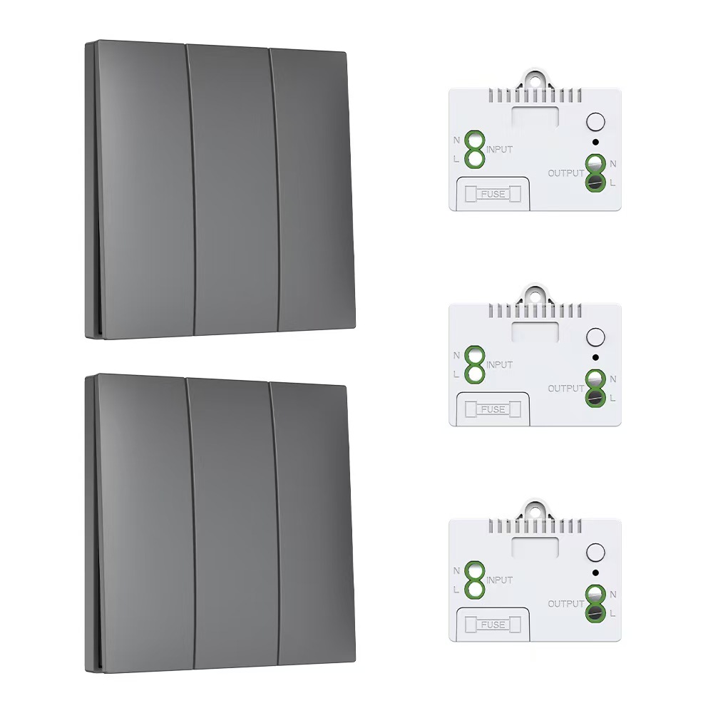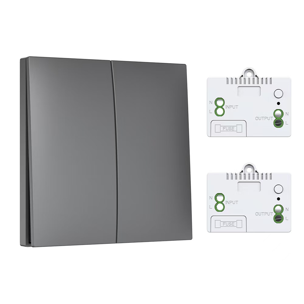 Self-powered switch 1 Gray Self-powered wireless remote control switch without wiring Allows for free placement and is smartly equipped with dual control for home lighting. Push-button rocker switch.