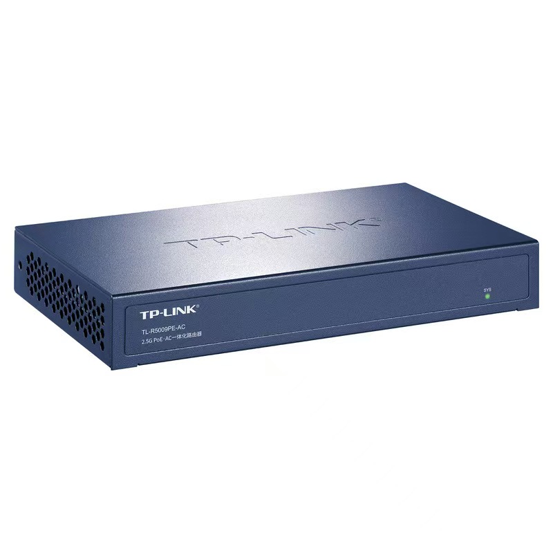 TP-LINK TL-R5009PE-AC 9-port 2.5G PoE·AC integrated router with Wi-Fi 7 AP management.
